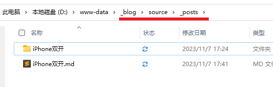 hexo new post iPhone双开3. 执行完成后在source_posts目录下生成了一个md文件和一个同名的资源目录(用于存放图片)