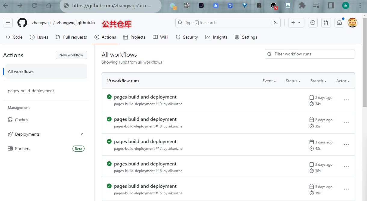 在查看公共仓库的action,等任务执行成功后。